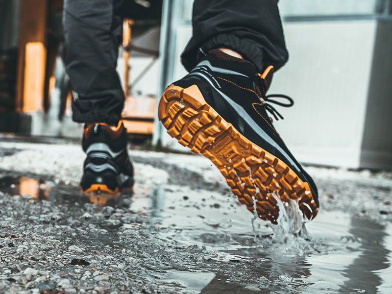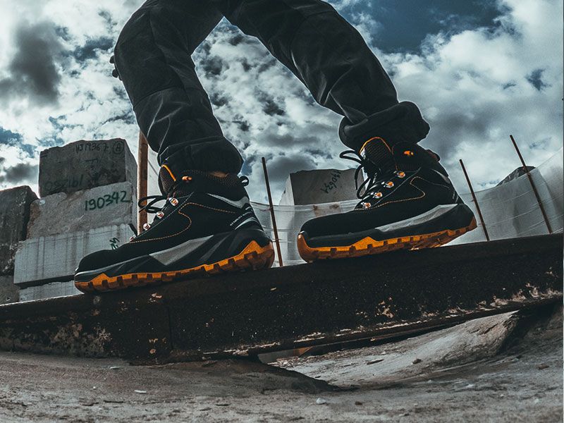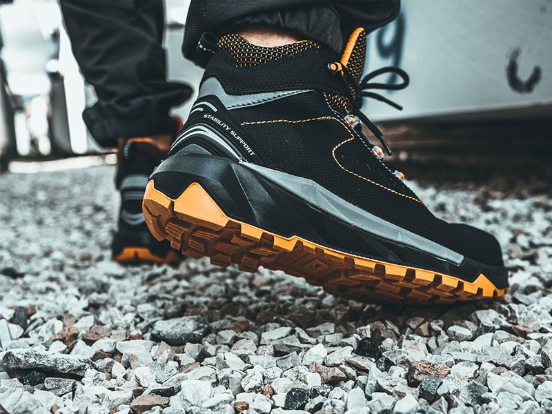 - Midsole antyprzebiciowy – elastyczna wkładka kompozytowa chroniąca stopę przed ostrymi przedmiotami.