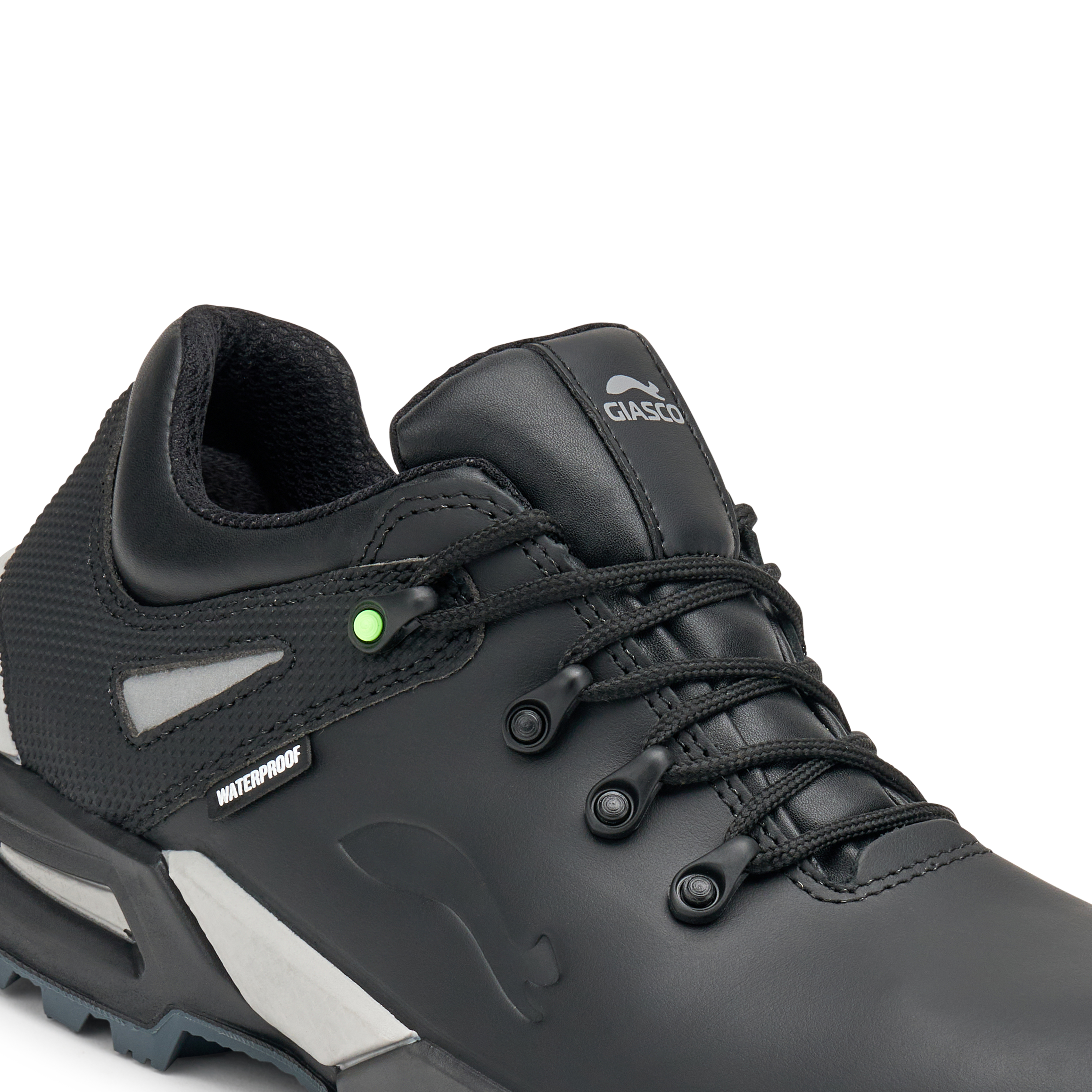 Buty robocze Giasco LOBBIA to niskie obuwie ochronne, które łączy trwałość, komfort i bezpieczeństwo w wymagających warunkach pracy. Wykonane z wysokiej jakości skóry licowej IDROTECH® WPA o grubości 1,8–2,0 mm, z dodatkowym wzmocnieniem pięty pokrytej PU, odpornej na ścieranie i wysokie obciążenia. Wnętrze wyłożone membraną Windtex®, wodoodporną, oddychającą i odporną na przetarcia, zapewnia komfort termiczny i odprowadzanie wilgoci. But wyposażony jest w odblaskowe elementy oraz miękko wyściełany język. Całkowicie bezmetalowe wykonanie zwiększa bezpieczeństwo w miejscach pracy wymagających tego typu obuwia.
