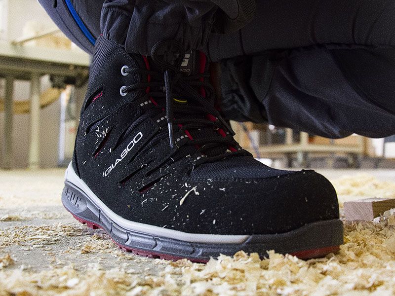 - Elastyczna wkładka antyprzebiciowa (EN 12568) – skuteczna ochrona przed ostrymi przedmiotami.