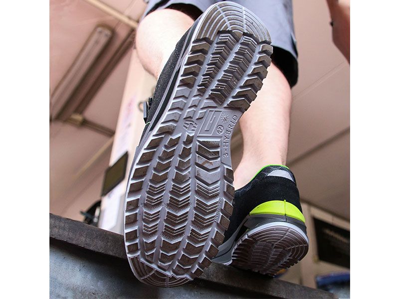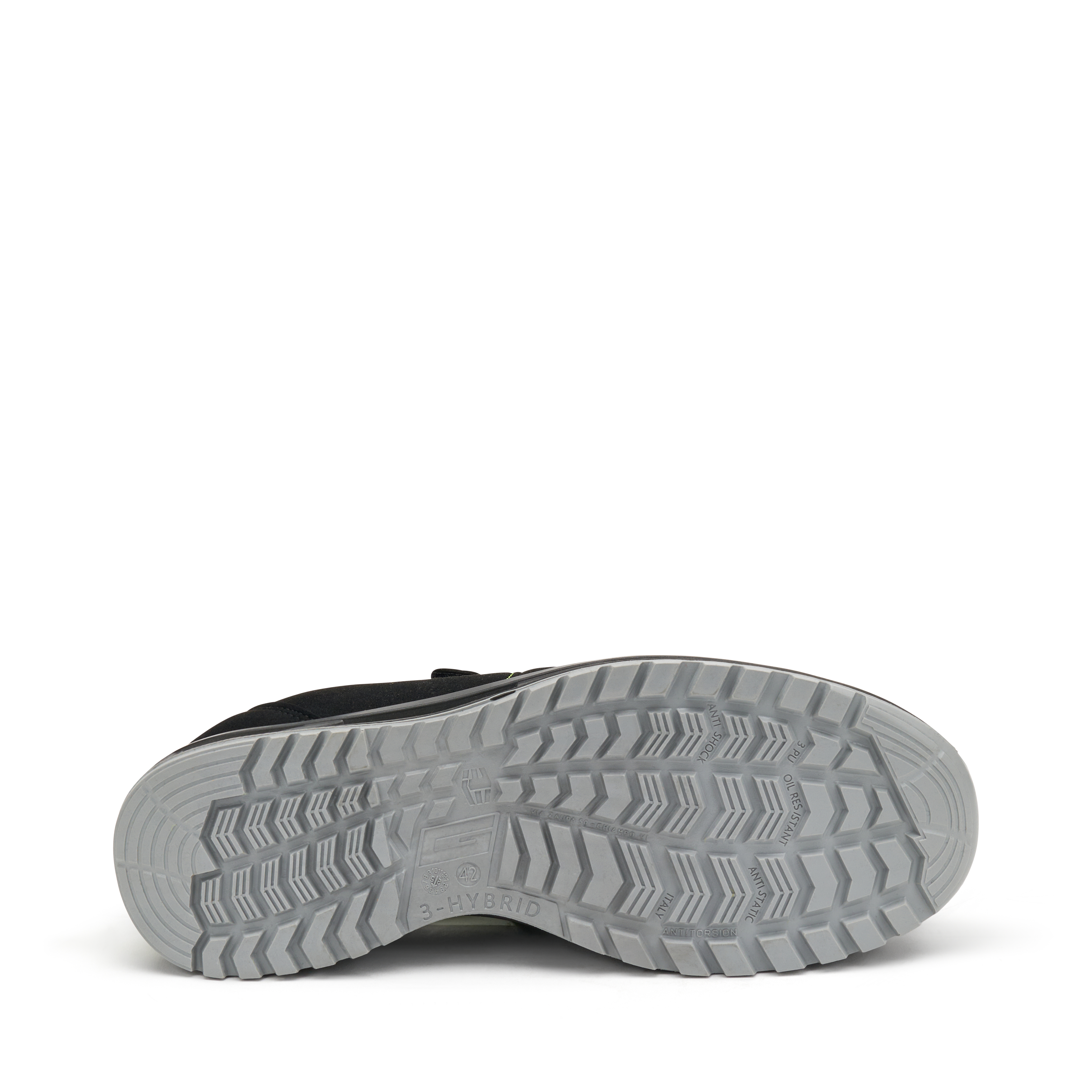 - Podeszwa 3HYBRID z poliuretanu o trzech gęstościach: antystatyczna, odporna na węglowodory (FO), ścieranie i hydrolizę, amortyzująca wstrząsy oraz antypoślizgowa (SR).