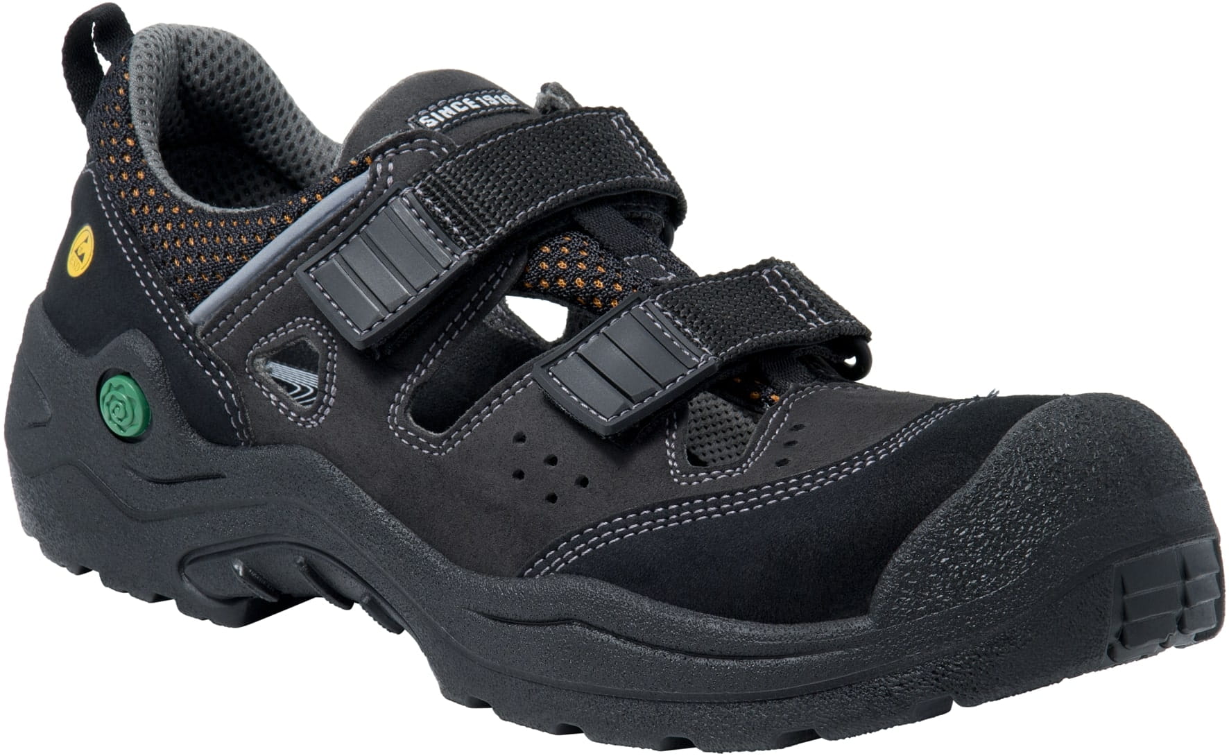 Pierwsze sandały bezpieczne z Ecolabel UE. Bez metalu, na rzep, z wkładką antyprzebiciową z tkaniny z kompozytu obrabianego plazmowo (PTC), podnoskiem z kompozytu i wkładką FX2 Supreme z podwójnymi strefami absorpcji. Materiał wierzchni: mikrofibra.