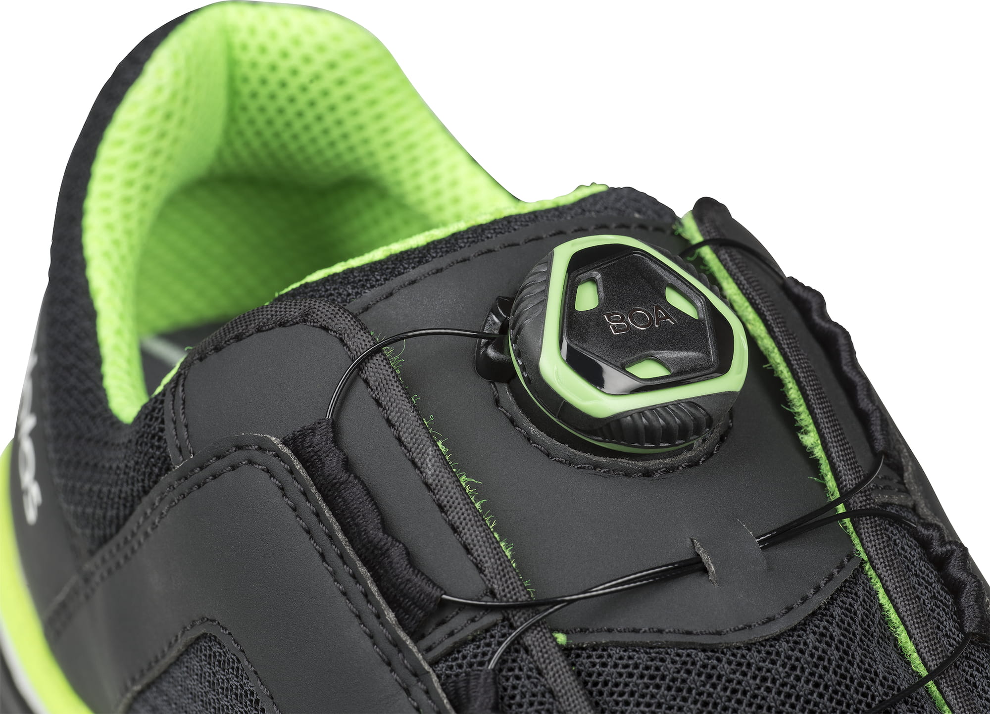 Obuwie bezpieczne do użytku w pracy i poza nią. Bardzo lekkie i wygodne obuwie z zielonymi detalami, systemem wiązania BOA®, zaawansowaną absorpcją wstrząsów z PORON XRD, ochronnym podnoskiem oraz miękką i elastyczną wkładką antyprzebiciową z materiału tekstylnego.