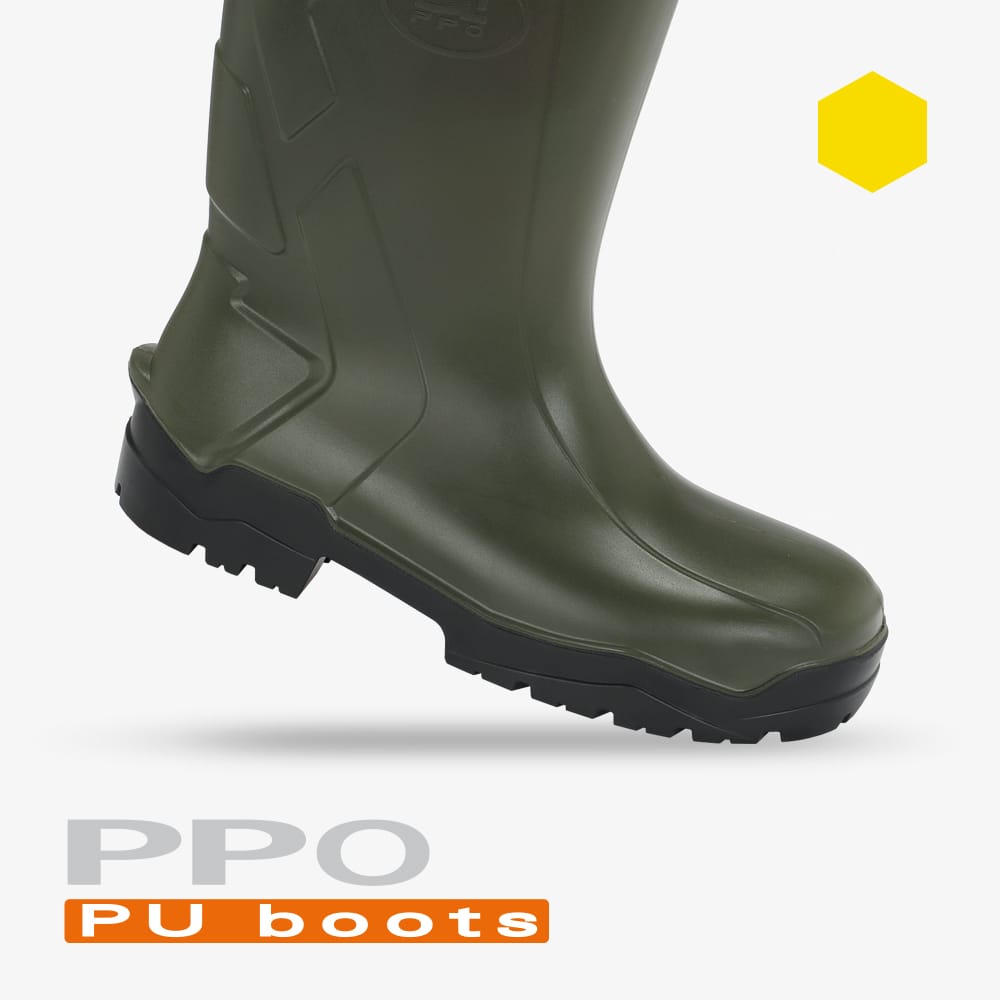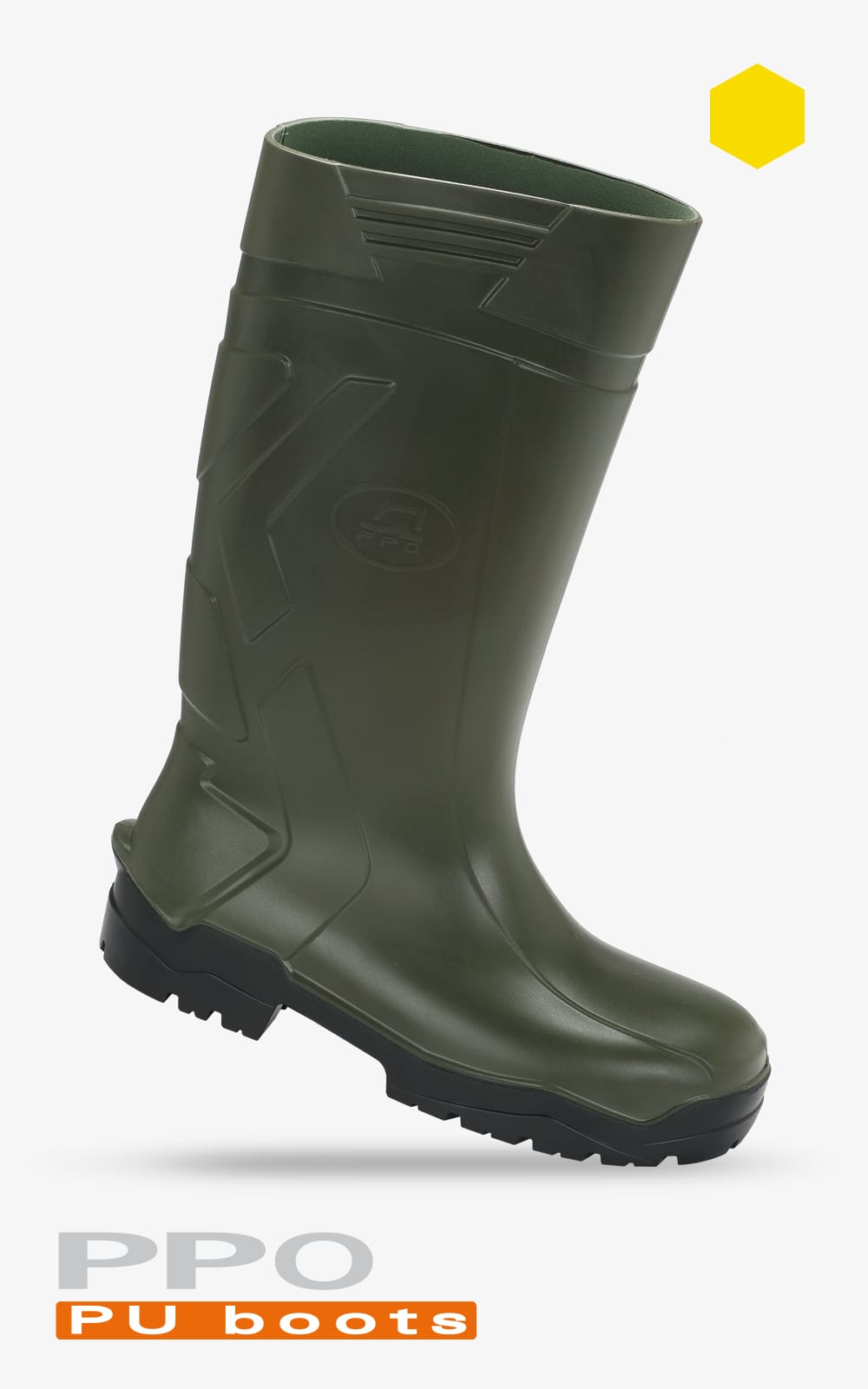 Buty zawodowe całotworzywowe wykonane z poliuretanu, bez podnoska. Szczególnie zalecane w w rolnictwie i leśnictwie, hodowli zwierząt, ogrodnictwie, sadownictwie, cukrowniach, polecany także dla wędkarzy i myśliwych.