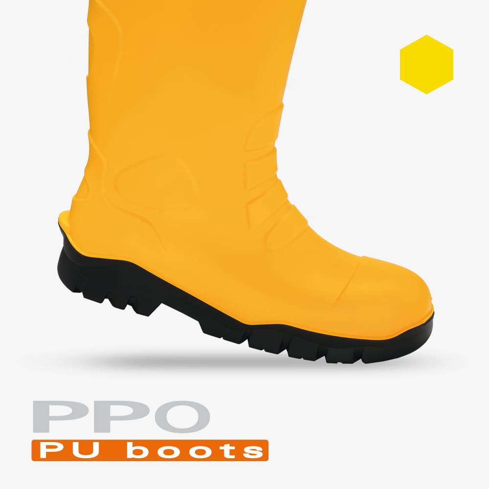 Buty całotworzywowe wykonane z poliuretanu, bezpieczne z metalowym podnoskiem i wkładką antyprzebiciową. Szczególnie zalecane w górnictwie, budownictwie, rolnictwie i leśnictwie, hodowli zwierząt.