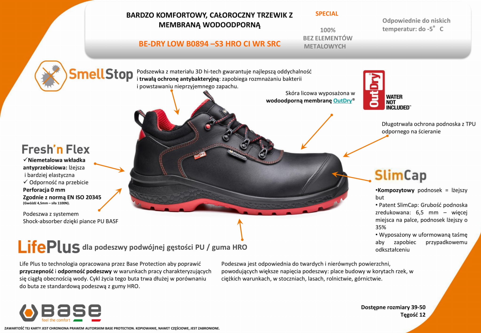 Półbuty Base BE-DRY LOW B0894S | S3, HRO, CI, WR, SRC - Sprawdź KLASY OBUWIA.