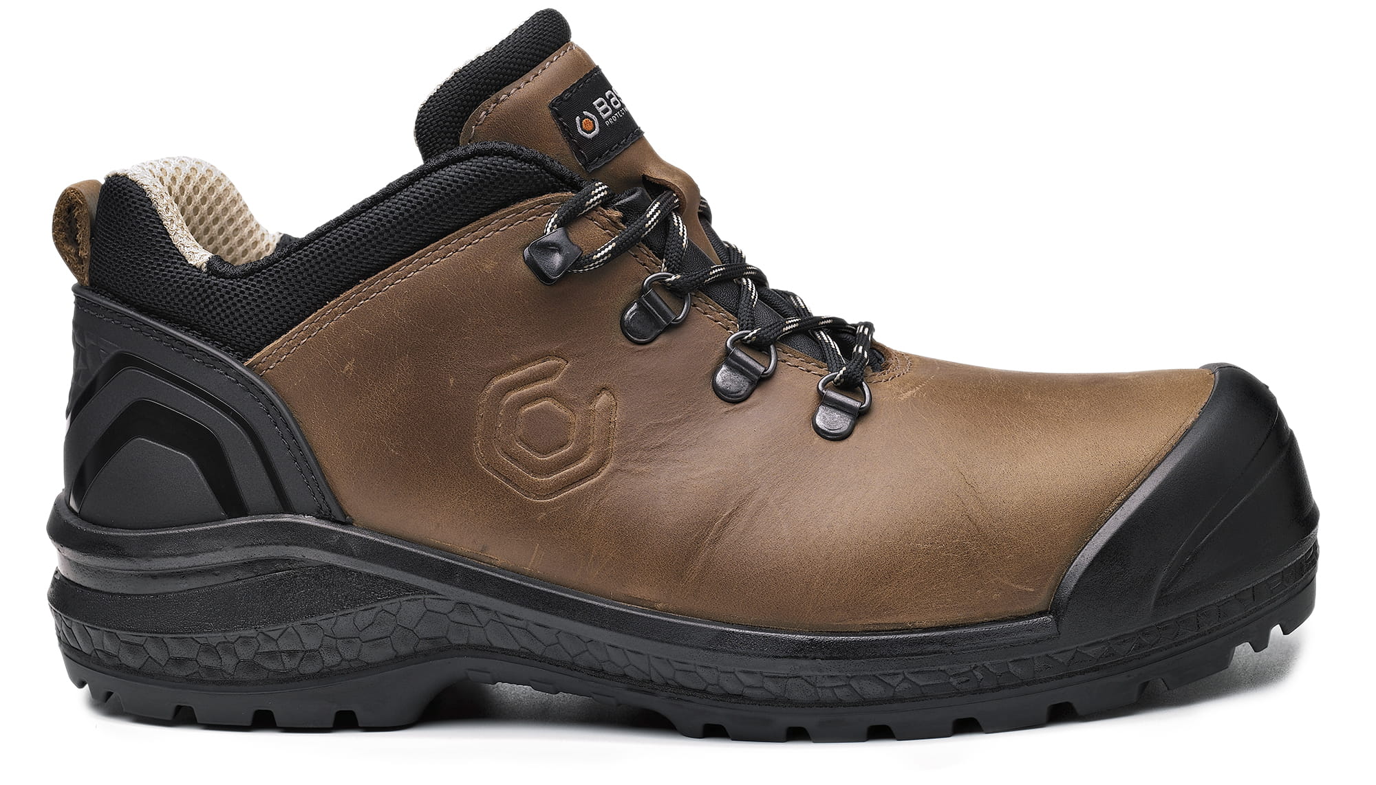Cholewka z wodoodpornej skóry licowej w jednym kawałku + nalanie z przodu osadzone w podeszwie zwiększające żywotność obuwia. Wzmocnienie pięty z TPU. Wszyty język chroni przed pyłem. Podszewka półbuta z materiału 3D Hi-Tech zapewnia oddychalność oraz ochronę antybakteryjną. Podeszwa Life Plus to technologia opracowana przez Base Protection aby poprawić przyczepność i odporność podeszwy, wstawka antyskrętna dla lepszej stabilności i wsparcia łuku stopy. Niemetalowa wkładka antyprzebiciowa zgodnie z normą EN ISO 20345. Lekki podnosek kompozytowy powoduje że obuwie jest naprawdę lekkie. Półbuty dla bardzo wymagających przeznaczony do wyjątkowo trudnych warunków pracy.
