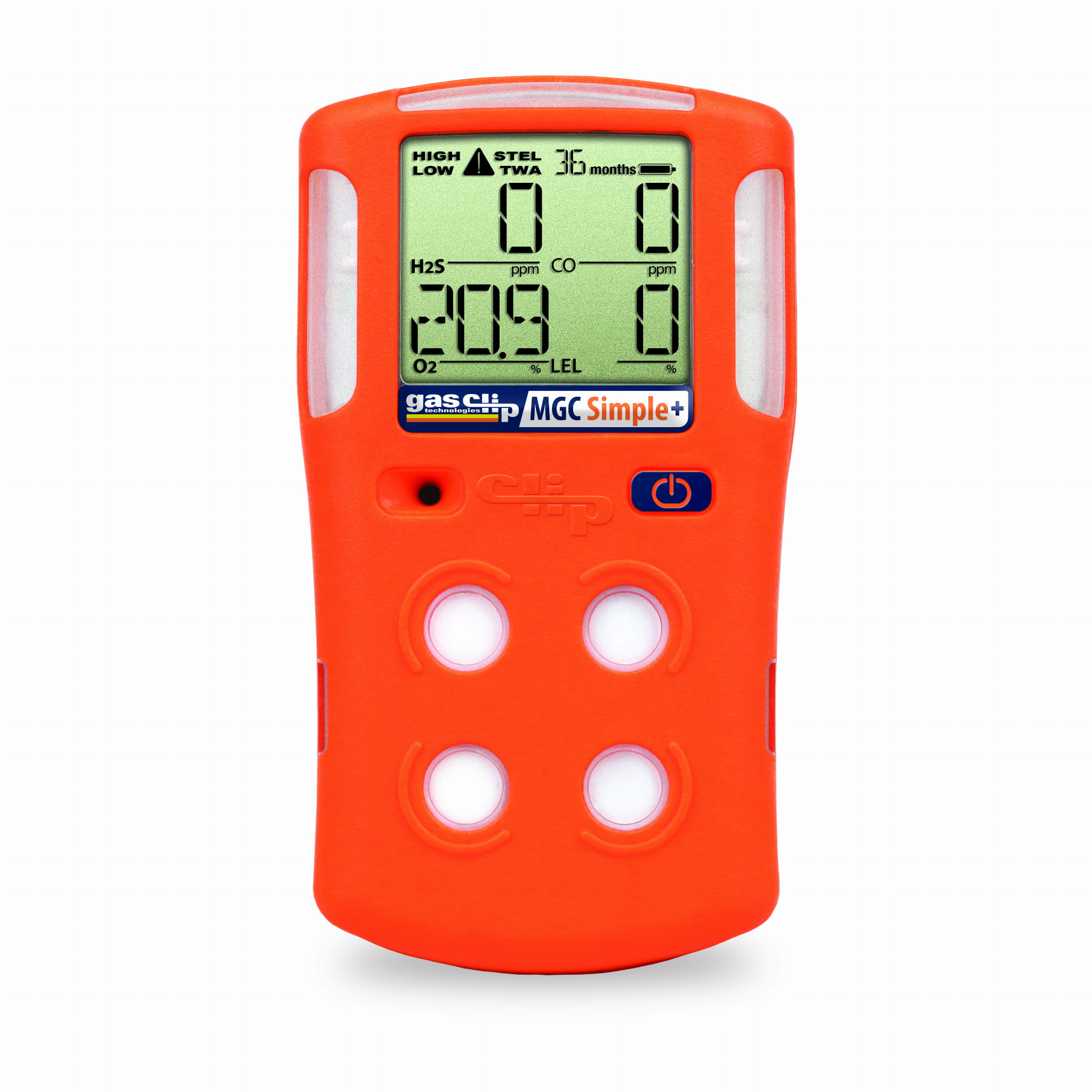 Detektor wielogazowy Multi Gas Clip Simple Plus to zaawansowane urządzenie przeznaczone do monitorowania stężenia czterech gazów: metanu (CH4), tlenu (O2), siarkowodoru (H2S) oraz tlenku węgla (CO).