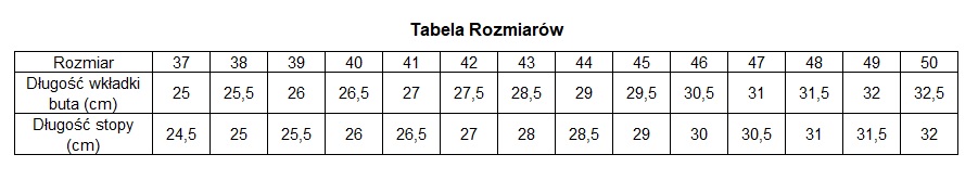 * Rozmiary 37-40 oraz 47-50 dostępne pod zamówienie.