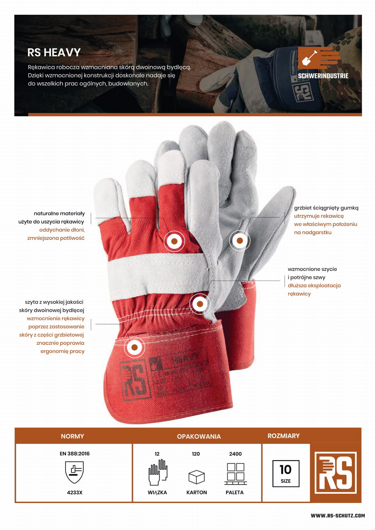 Rękawica ochronna kat. II wzmocniona skórą dwoinową. Całodłonicowa- część