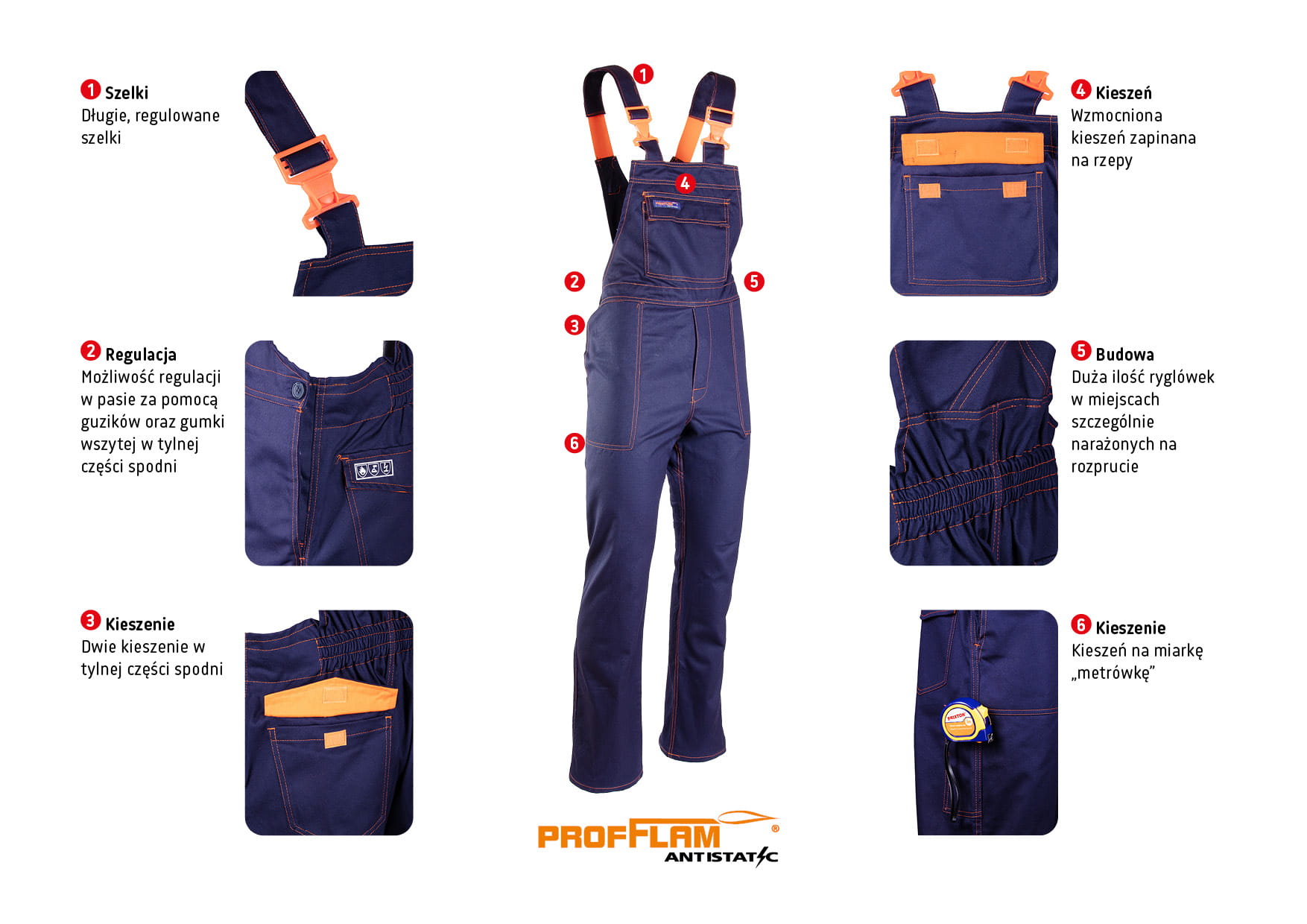 Spodnie ogrodniczki PROFFLAM ANTISTATIC