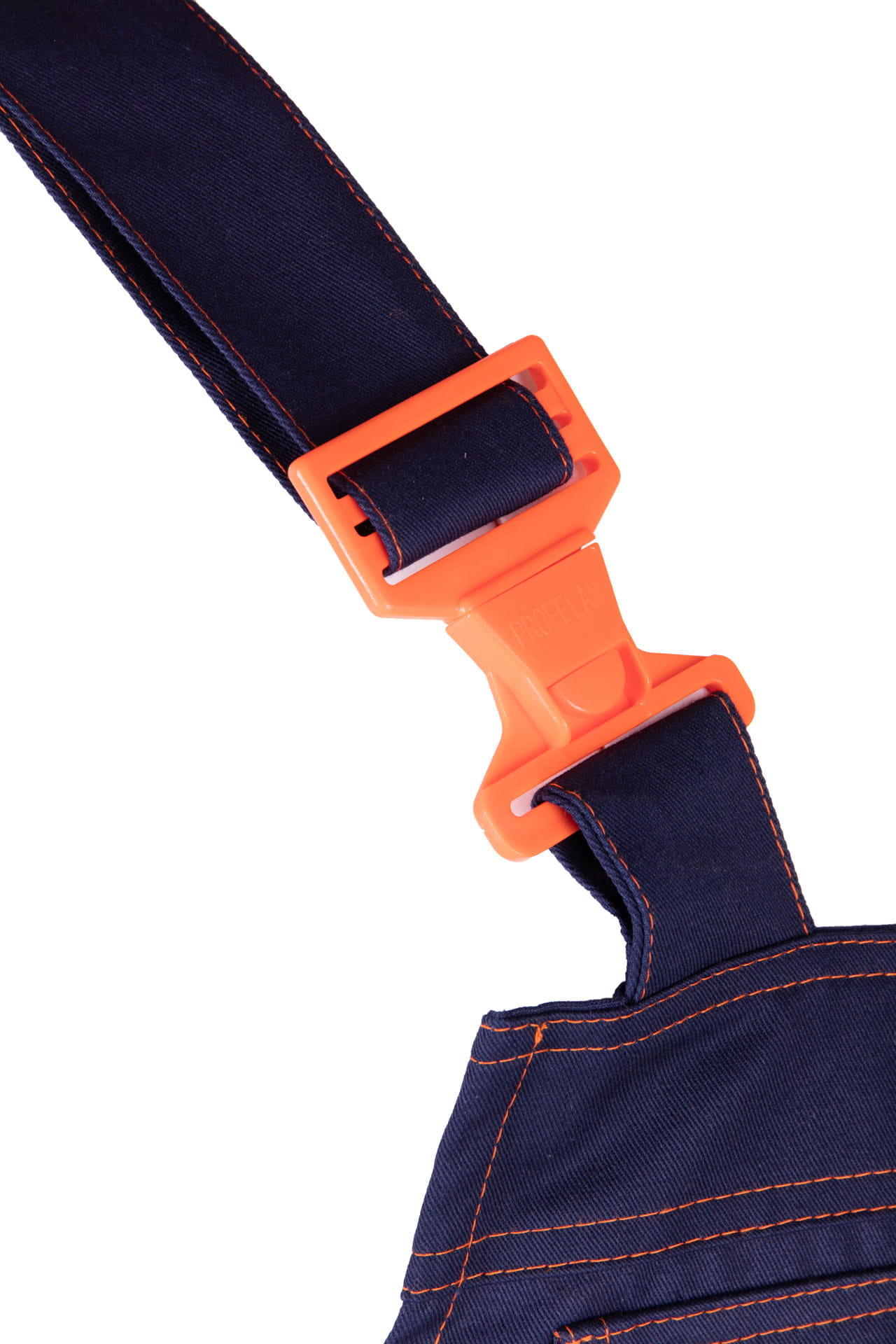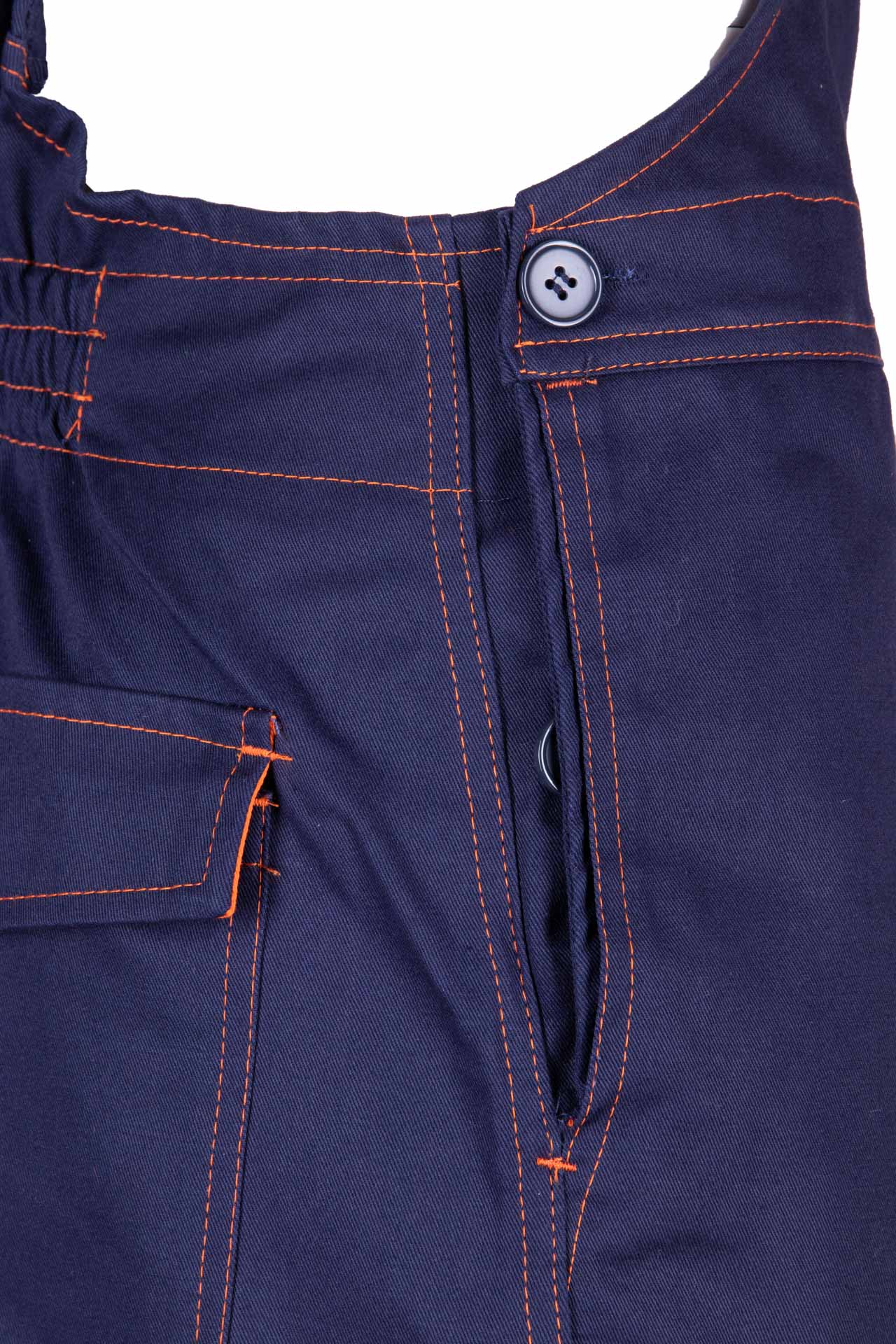 Możliwość regulacji obwodu w pasie za pomocą guzików oraz gumki wszytej w tylnej części spodni sprawia, że spodnie ogrodniczki idealnie dopasowują się do sylwetki użytkownika, zapewniając pełen komfort podczas pracy.