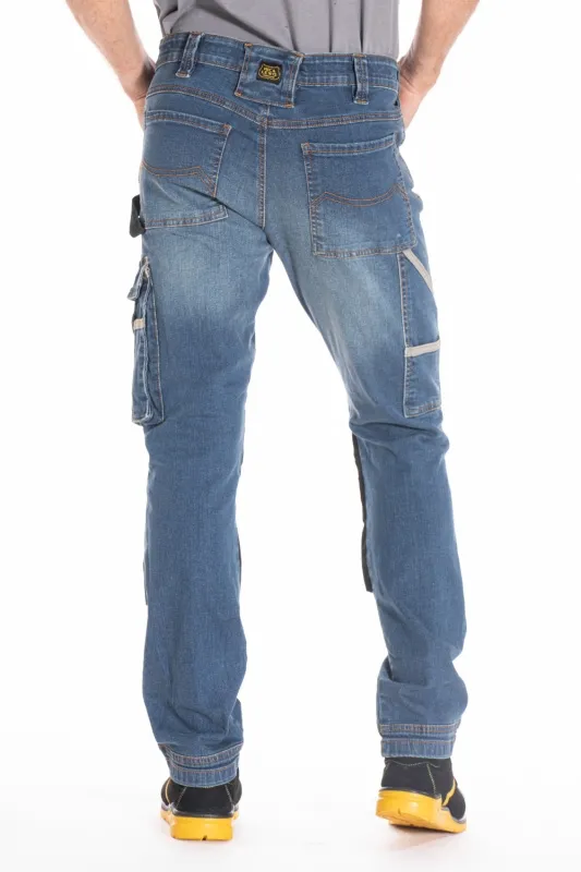 Model łączy klasyczny wygląd jeansów z funkcjonalnością odzieży roboczej, dzięki czemu sprawdzi się zarówno na budowie, w warsztacie, jak i podczas codziennych prac technicznych.