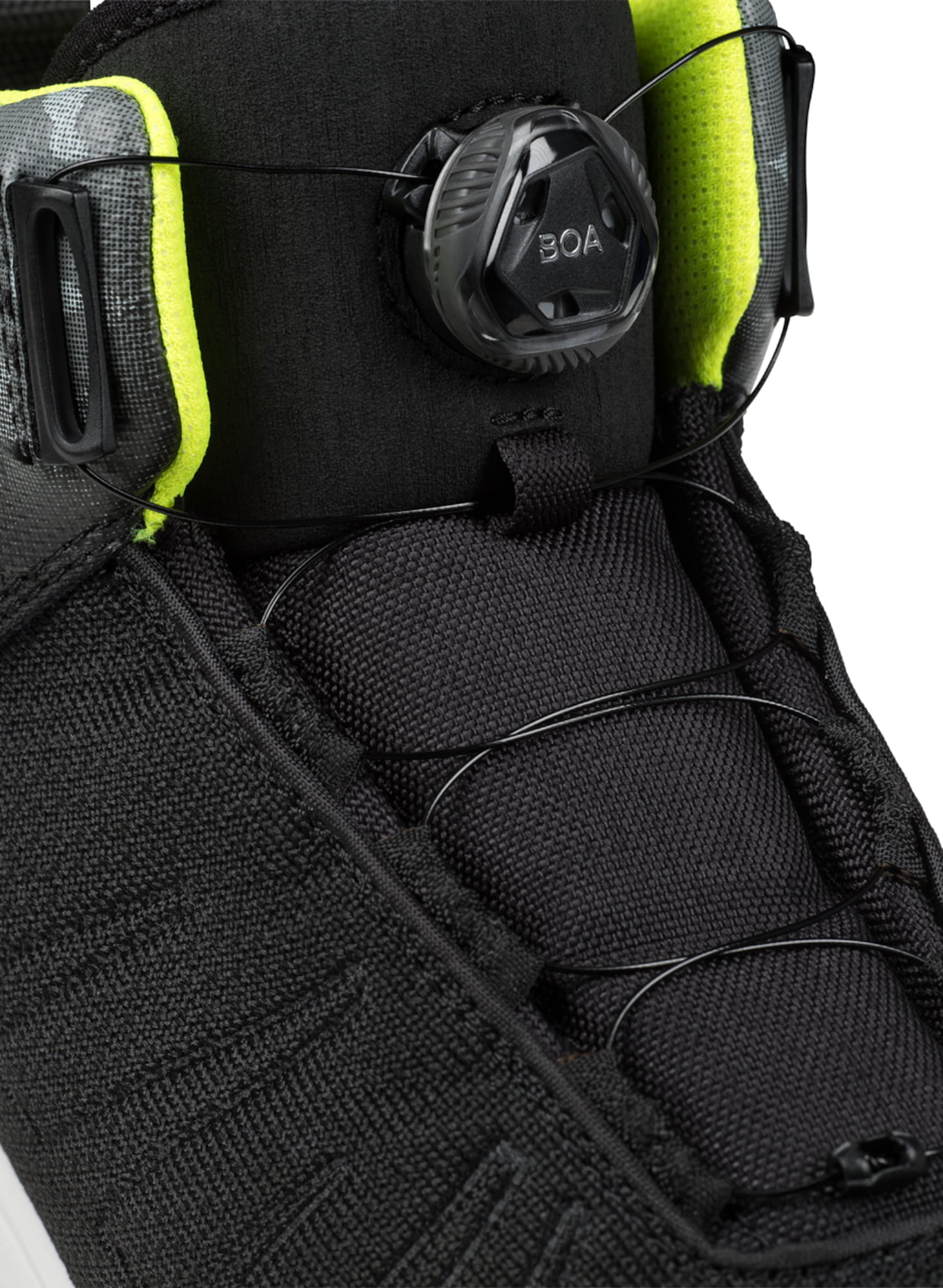 Nowe lekkie obuwie bezpieczne o średnim kroju z dodatkową stabilizacją kostki, dzianinową cholewką tekstylną i systemem dopasowania BOA®. Wyjątkowa ergonomia, wyściółka z pianki z pamięcią kształtu oraz właściwości hydrofobowe dla bezpieczeństwa i wygody przez cały dzień. Odporna na olej podeszwa zewnętrzna z RPU zapewnia doskonałą przyczepność, a wentylowana podeszwa wewnętrzna zapobiega przegrzaniu stóp. Aluminiowy podnosek JALAS®, wkładka antyprzebiciowa z tkaniny z kompozytu obrabianego plazmowo oraz podwójne strefy ochrony przed uderzeniem dzięki PORON® XRD®.